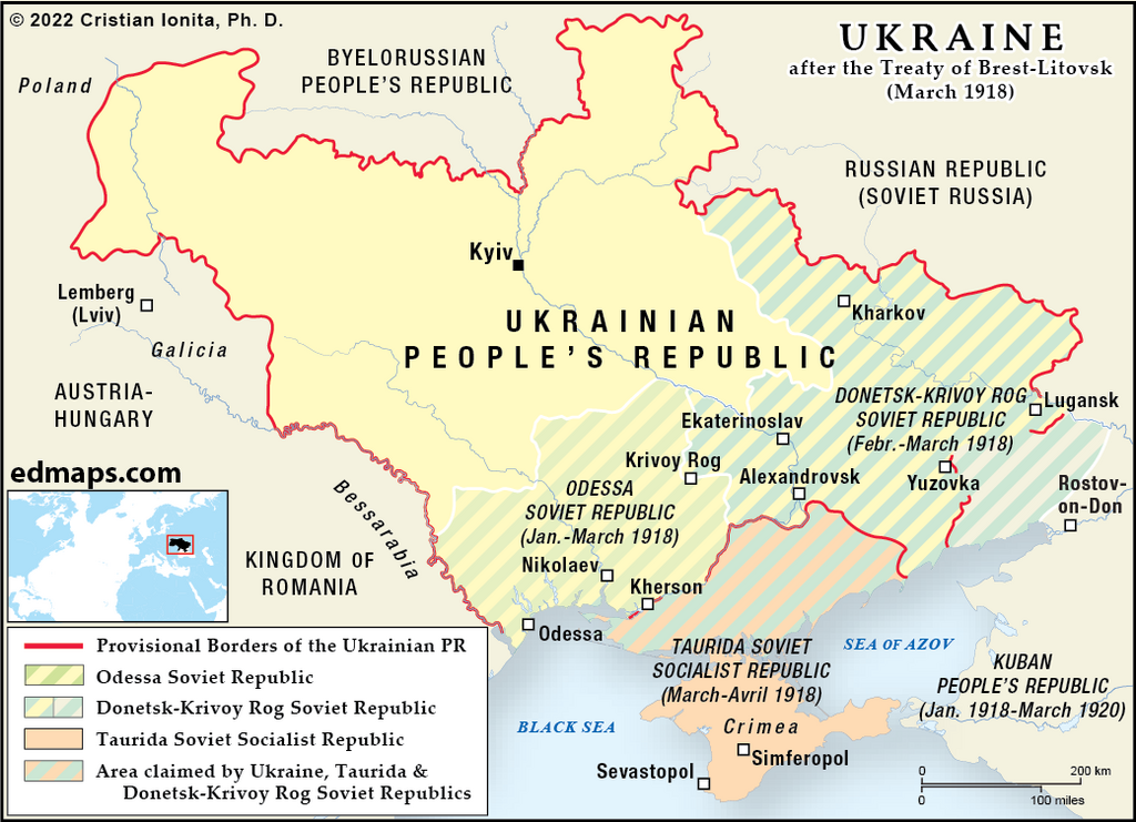 The UPR's territorial ambitions encompassed vast regions, including ethnic Ukrainian lands stretching from Galicia to the Kuban. However, these claims immediately faced resistance from Soviet Russia, which viewed Ukraine as essential to its revolutionary project. The Bolsheviks had already established rival Soviet republics within Ukrainian territory, directly challenging the UPR's legitimacy. The Odessa Soviet Republic, proclaimed in January 1918, controlled the vital Black Sea port until March, when German forces supporting the UPR captured the city. Similarly, the Donetsk-Krivoy Rog Soviet Republic, established in February 1918 in Ukraine's industrial heartland, rejected subordination to the UPR, claiming to represent the region's predominantly Russian working class. This republic lasted only until April, when German and UPR forces dissolved it, though Soviet influence remained strong in the eastern territories.